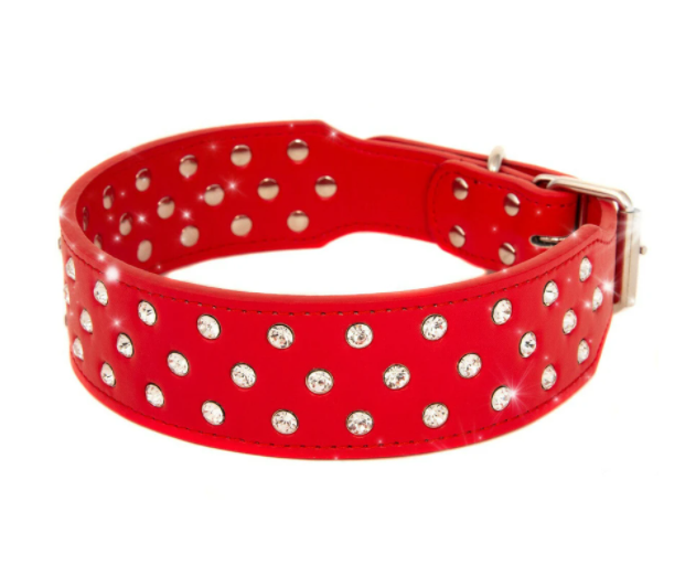 Ошейник из натуральной кожи "Lockdog" со стразами красный ширина 5 см